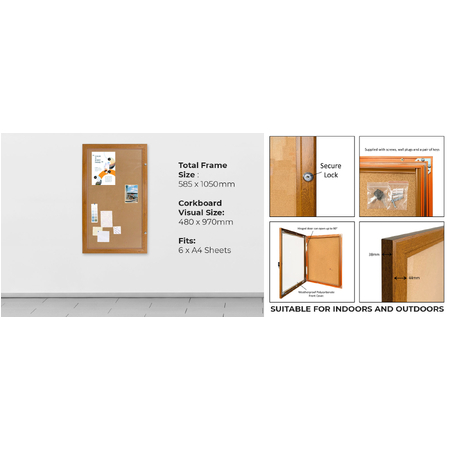 1 × 6 A4 Lockable Cork Notice Board