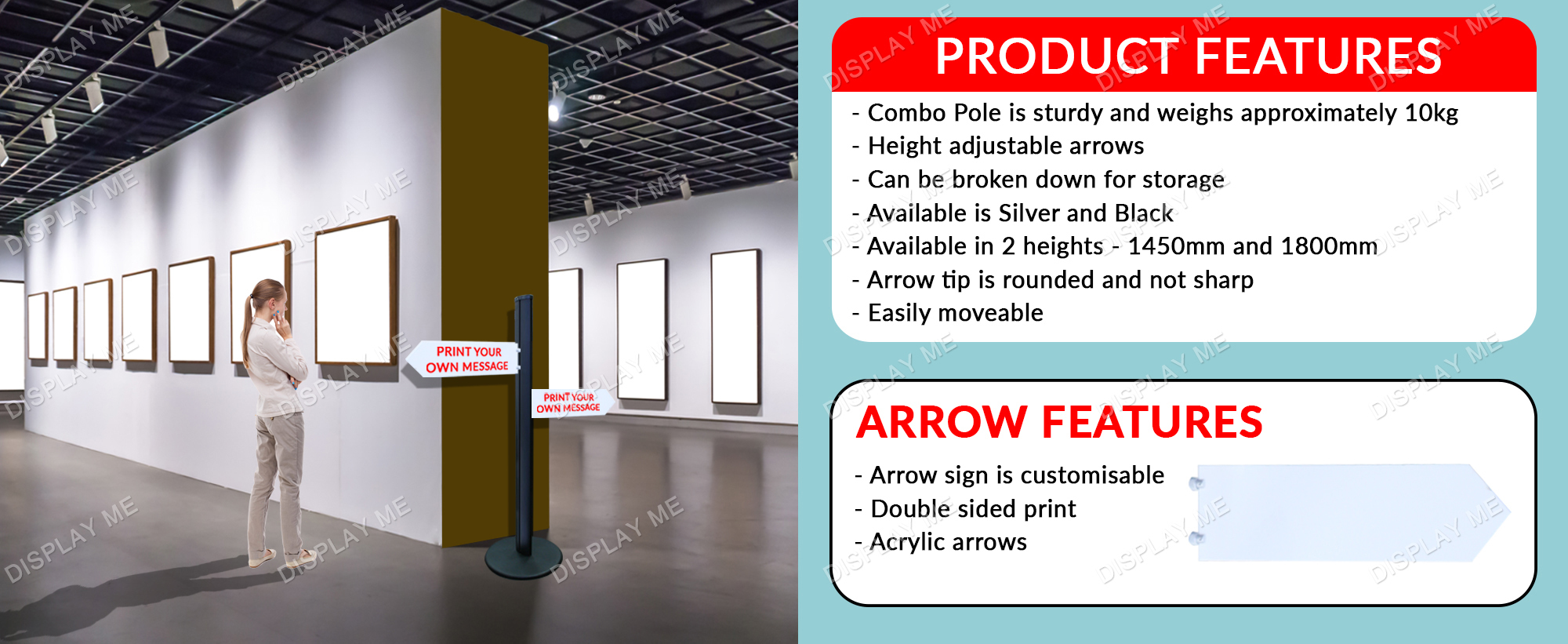 Highly recommended for using at tradeshows, inside offices, commercial and public buildings, schools, universities, hospitals, educational open days, outdoor events or any area where direction is required.