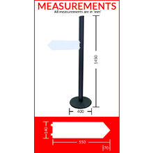 Directional Black Pole Sign direct people to a specific location. This signage medium is fundamental to businesses who want to direct customers to a specific area on their premises and to make clear which way they should be going.