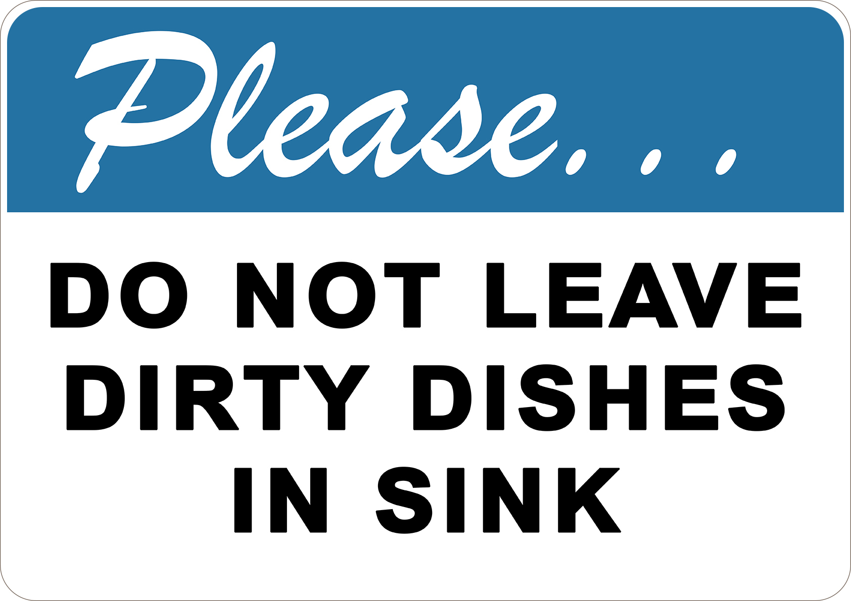PRINTED ALUMINUM A4 SIGN - Do Not Leave Dirty Dishes In Sink Sign