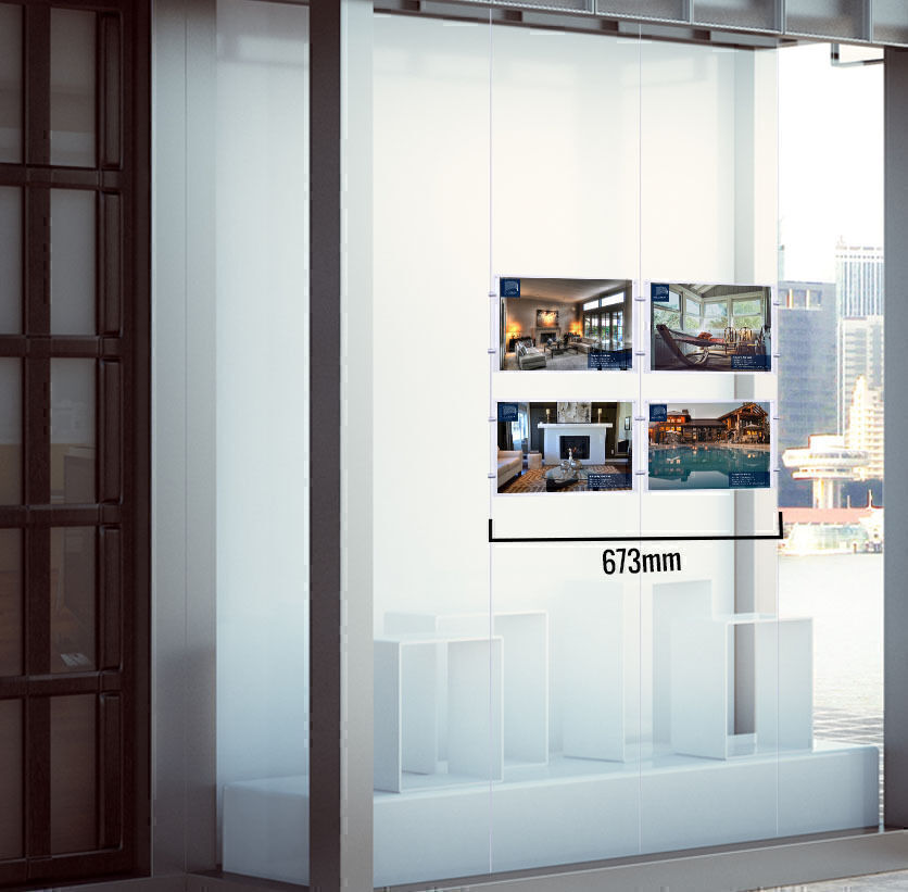 This Window Cable Display, Window Real Estate Displays is a double sided 3mm thick acrylic display attached to a cable system.