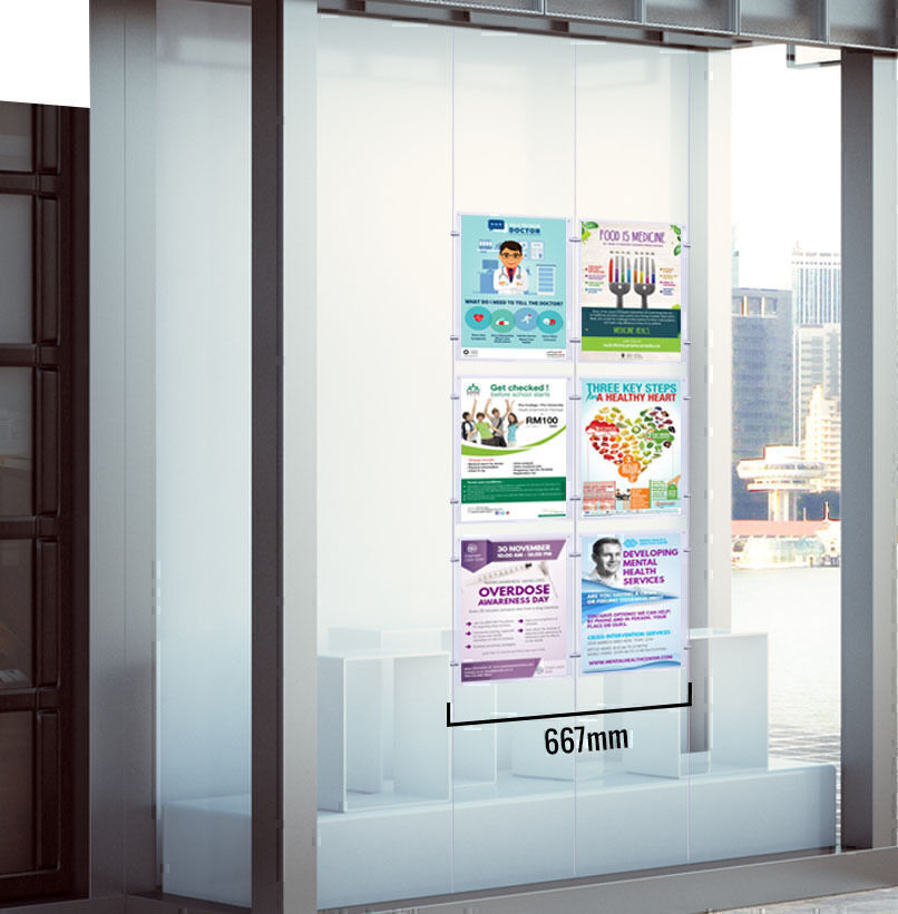 This Window Cable Display, Window Real Estate Displays is a double sided 3mm thick acrylic display attached to a cable system.