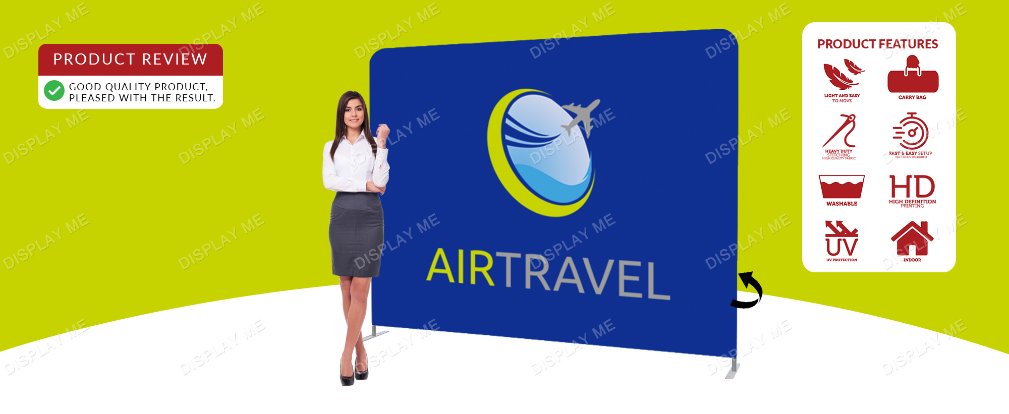 Widely used as a portable trade show stand or Exhibition Display System promoting your business or product for trade shows, shopping centres, retail stores exhibitions, expos and other events.