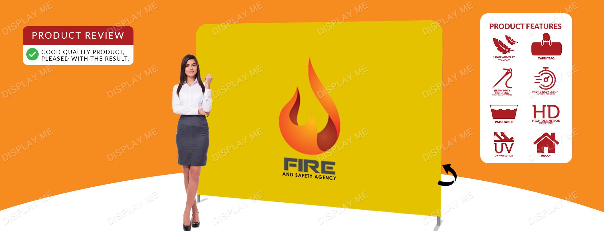 Widely used as a portable trade show stand or Exhibition Display System promoting your business or product for trade shows, shopping centres, retail stores exhibitions, expos and other events.