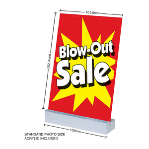 Sold OutOur Elements Sign Holder, Aluminum Base Acrylic Sign holder, Silver Base Acrylic Menu Holders are a modern stylish table talker that has a silver Aluminum base and an acrylic top.