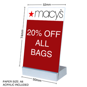 | Angled | Holds Poster Size | Paper Size (w x h mm) | Product Code | Base Size (w x h x d) |