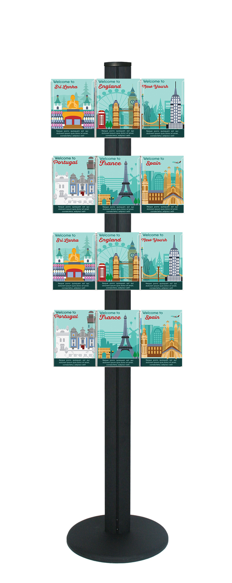 Freestanding 1450mm Black Combo Brochure Holder 15 Landscape Postcard Holders