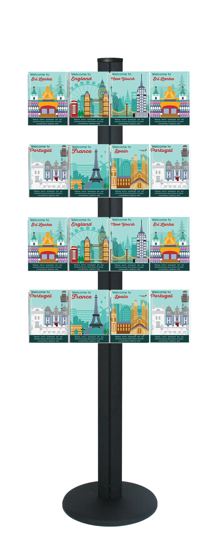 Freestanding 1450mm Black Combo Brochure Holder 15 Landscape Postcard Holders