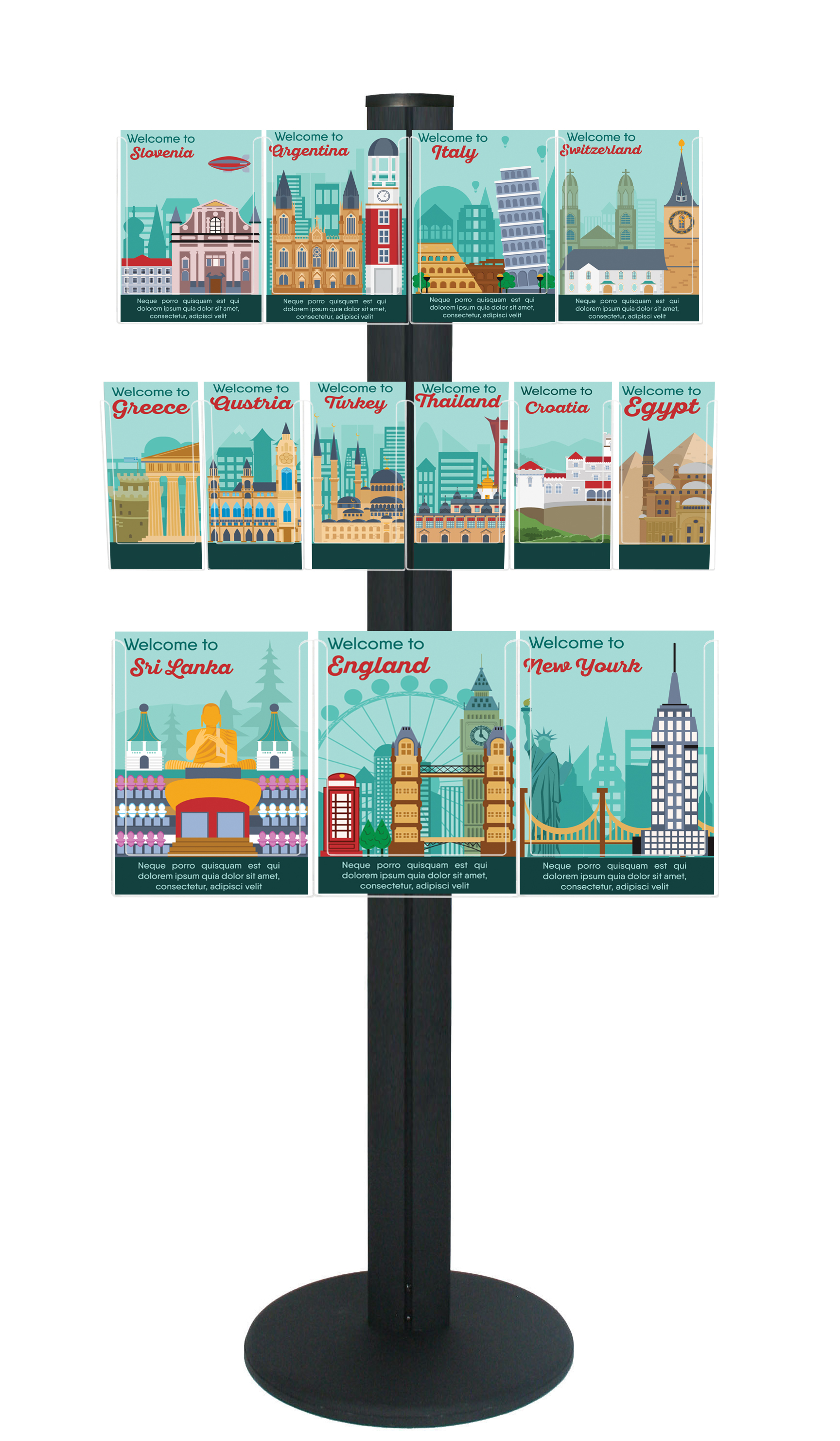Freestanding 1450mm Black Combo Brochure Holder 15 Landscape Postcard Holders