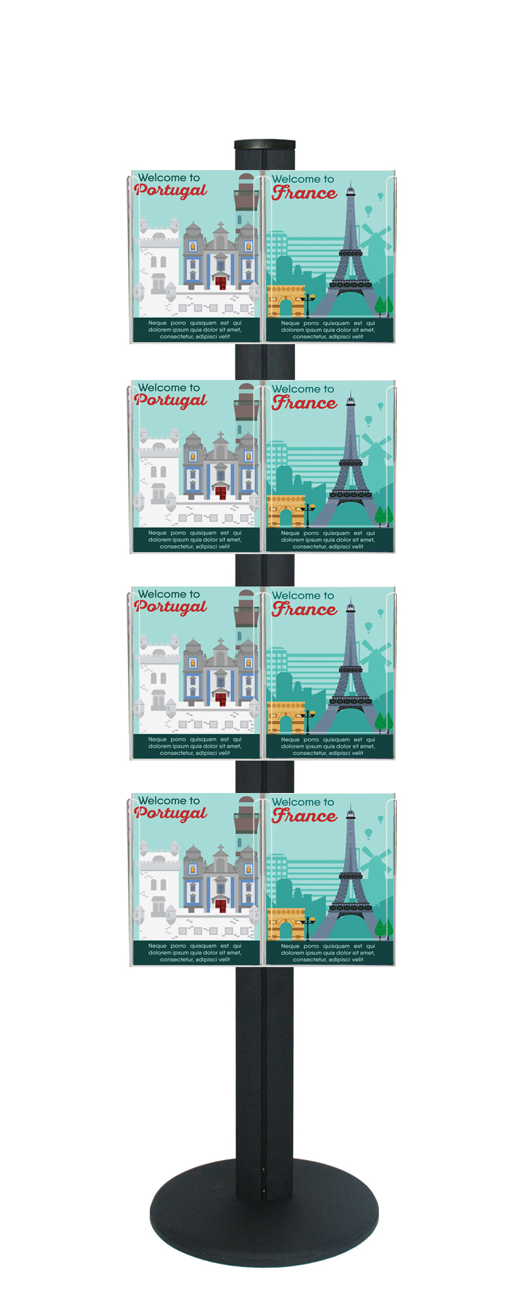 Freestanding 1800mm Black Combo Brochure Holder 8 A4