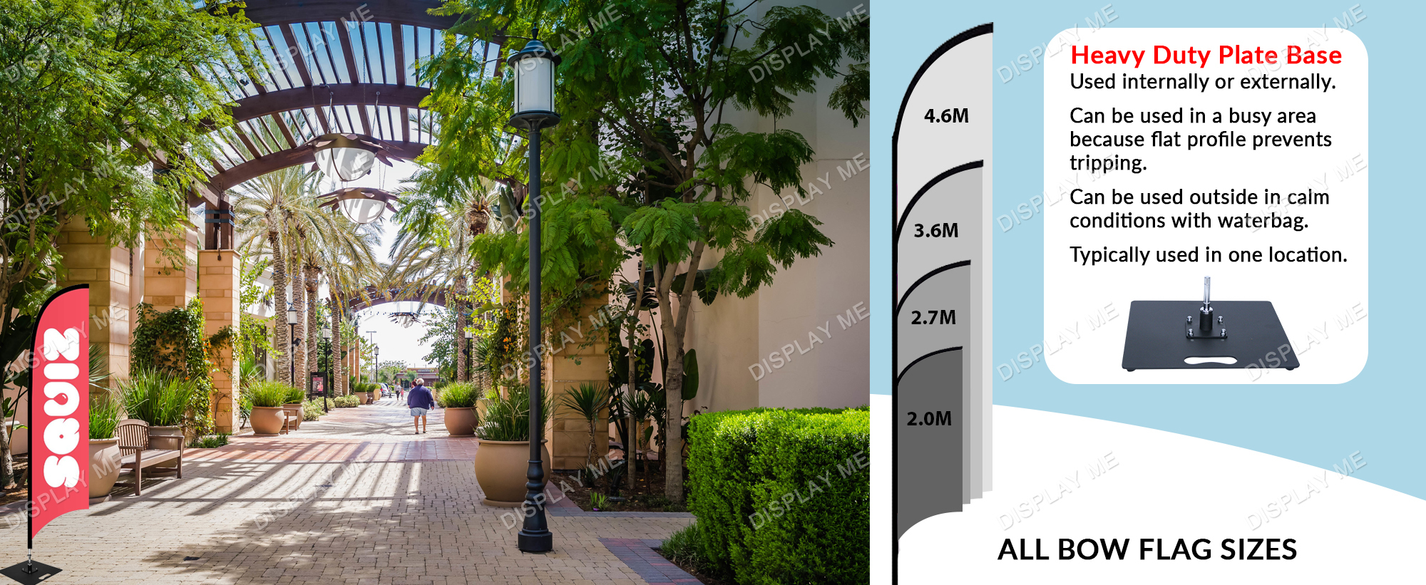 Double Sided 2 Meter Bow Fabric Flag with Heavy Duty Steel Square Base