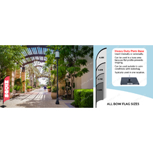 Bow Fabric Banner is also called Flying Banner. The Bow Fabric Banner comes complete with poles, printed banner, carry bag and a your selected mounting option. This Bow Fabric Banner can be produced in both single sided or double sided versions and replacement fabric banners give you the flexibility to change your graphic and message with ease. It is an ideal street banner to be used in moderate winds and weather. Although perfect for outside use, this Bow Banner can also be used for an indoor events.