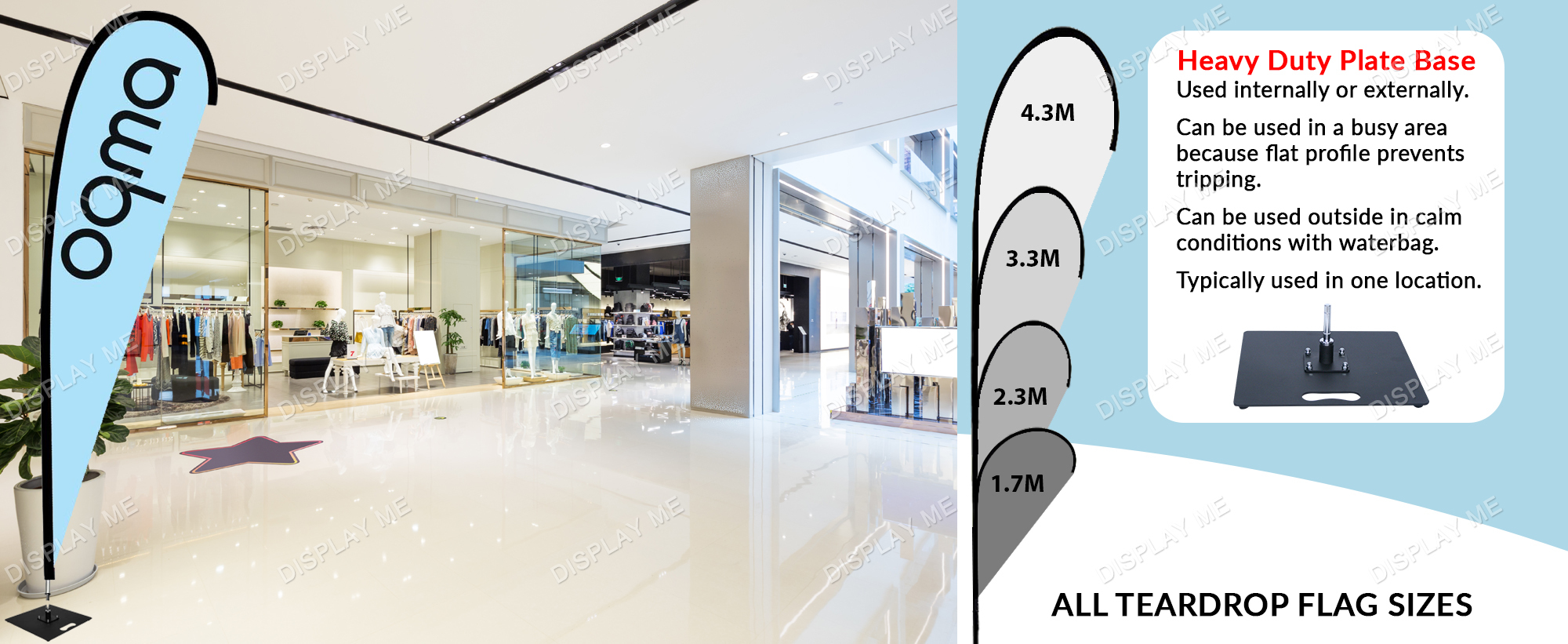 Double Sided 4.3 Meter Teardrop Fabric Flag with Heavy Duty Steel Square Base