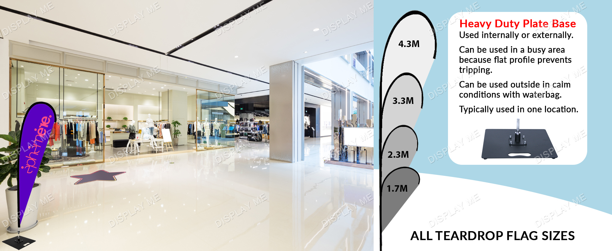 Double Sided 2.3 Meter Teardrop Fabric Flag with Heavy Duty Steel Square Base