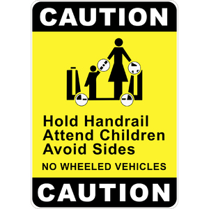 PRINTED ALUMINUM A5 SIGN - Hold Handrail Attend Children Sign