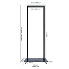 In StockThe Tall Info Stand is a portable display stand. This is a Single Sided black freestanding stand with a A1 Poster Display and 8 A5 Brochure Holders. It is sturdy and made of Steel and powder coated in Black. This stand is 1800mm tall and stands out making it visible and prominent. The frame is a tamper proof snap frame with a steel backing. The frame remains locked unless bottom, sides then top profiles are opened sequentially. The base is a low profile lockable wheel base that has removable wheels. They are ideal for venues and shopping malls to advertise or promote events. They can be used in a variety of indoor or under cover locations for a smart, professional look for your businesses signage and promotions.