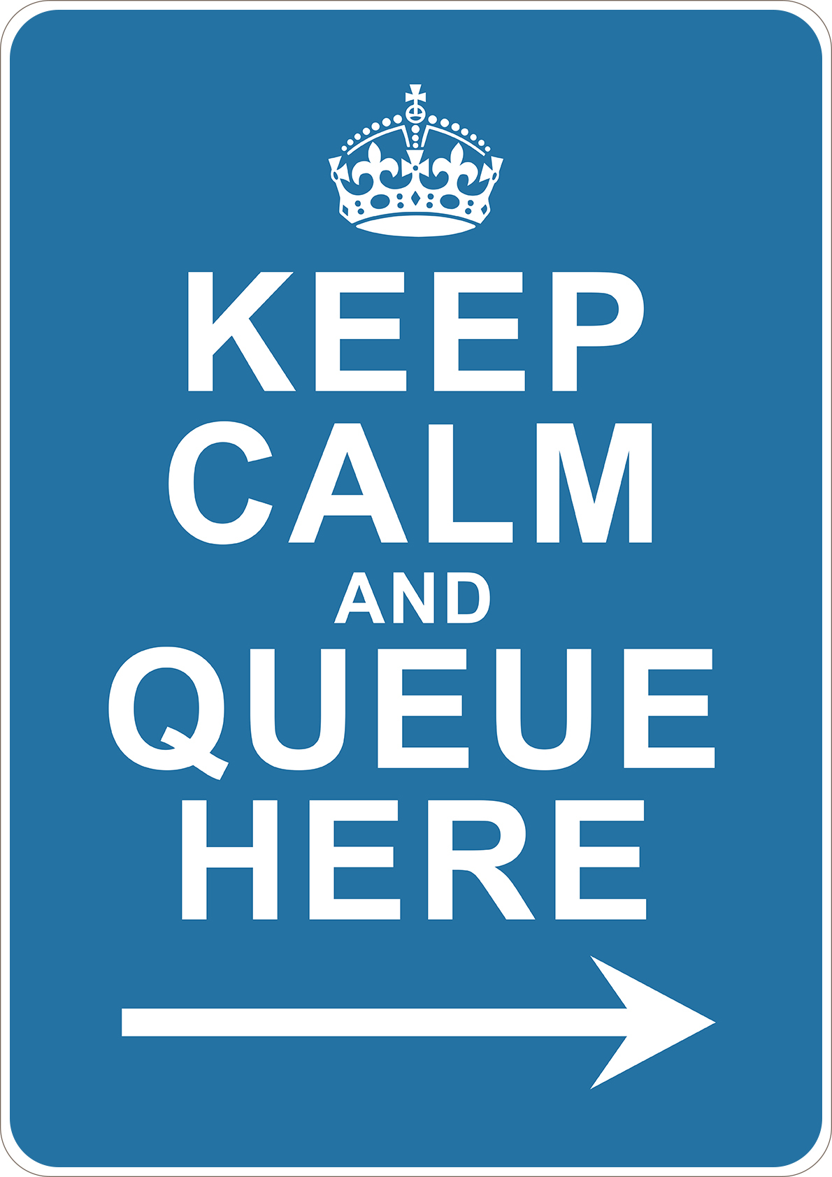 PRINTED ALUMINUM A4 SIGN - Keep Calm And Queue Here Sign