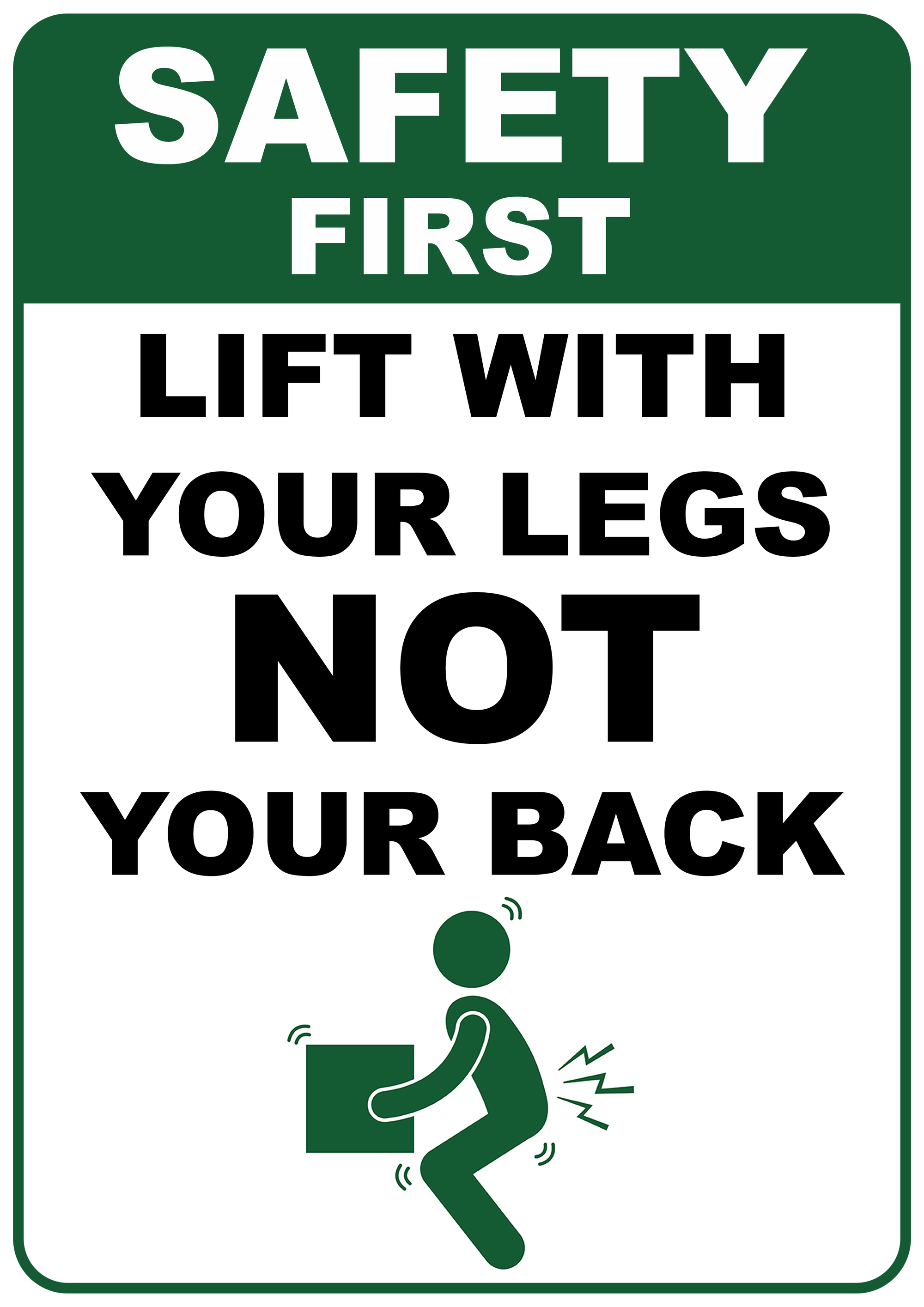 PRINTED ALUMINUM A2 SIGN - Lift With Your Legs Not With Your Back Sign