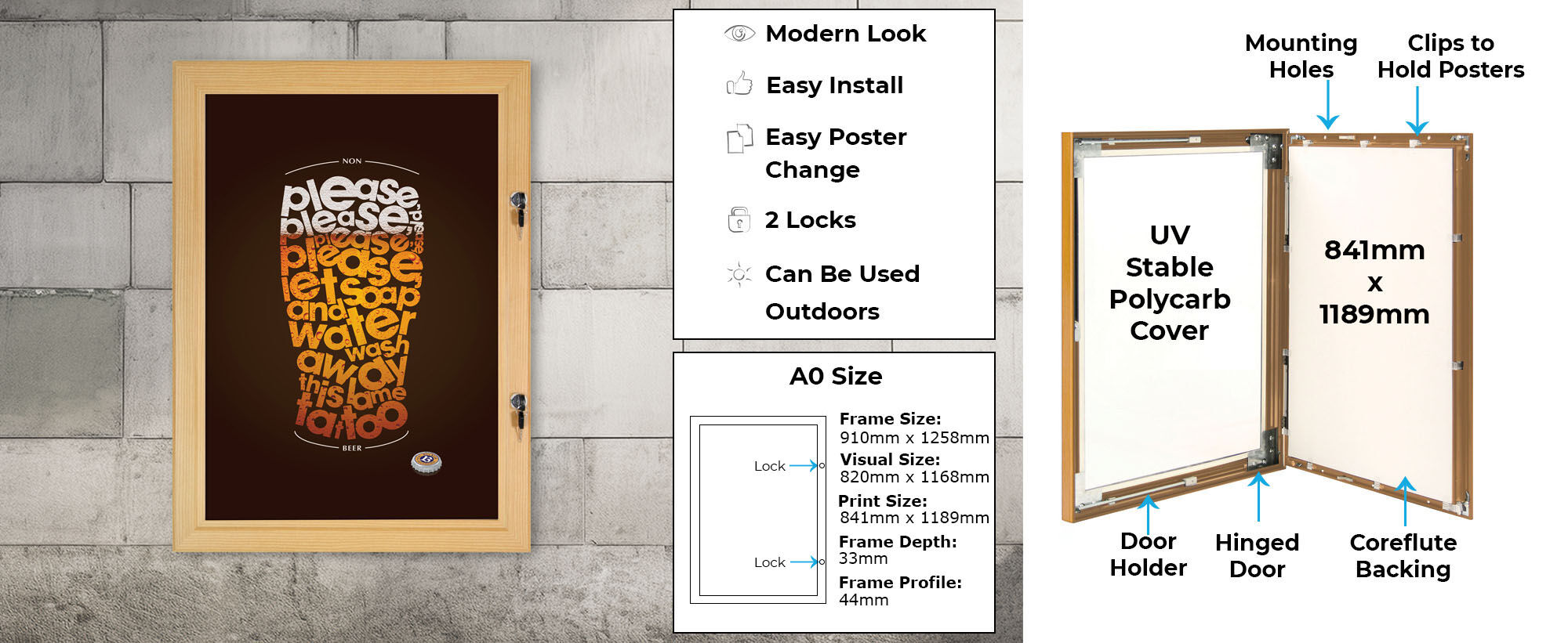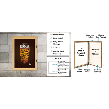 Show your posters, menus, and notices in style with the A0 Light Wood Lockable Outdoor Showboard — perfect for restaurants, cafés, retail stores, schools, offices, and community spaces. This professional display case keeps your posters safe, clearly visible, and protected from weather, fading, and tampering. Ideal for indoor or outdoor use, it combines style, security, and convenience in one sleek package.