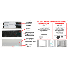 This Magnetic Eraser sets contain 2 high quality, long lasting wipe markers that conveniently slide into the Magnetic Eraser for easy access and keeping markers stored away and always readily available.