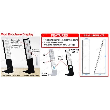 The Mod Brochure Holder is a modern unique Freestanding Brochure Holder that holds A4 and DL Brochure Holders.
