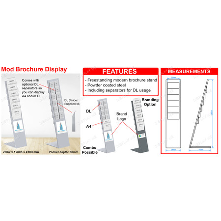The Mod Brochure Holder is a modern unique Freestanding Brochure Holder that holds A4 and DL Brochure Holders.