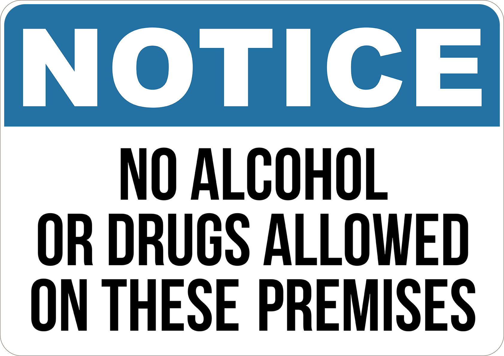 PRINTED ALUMINUM A3 SIGN - No Alcohol or Drugs Allowed On