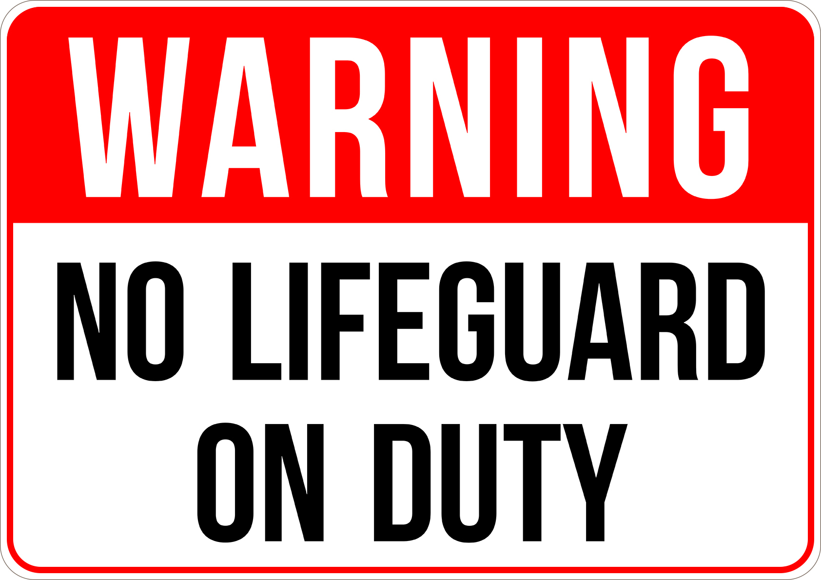 PRINTED ALUMINUM A3 SIGN - No Life Guard On Duty Sign