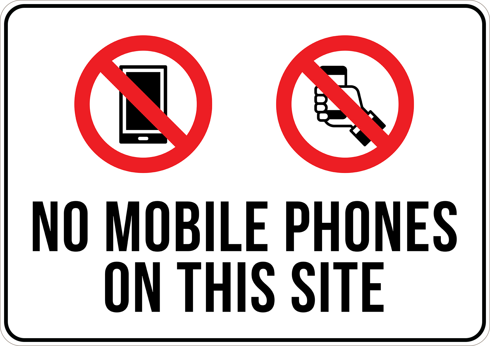 PRINTED ALUMINUM A5 SIGN - No Mobile Phones On This Site Sign