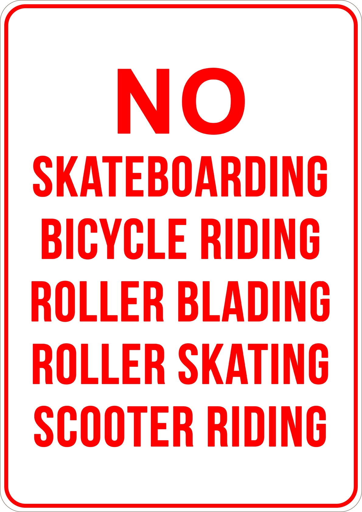 PRINTED ALUMINUM A3 SIGN - No Skatebording, bicycle, Roller or Scooter Sign