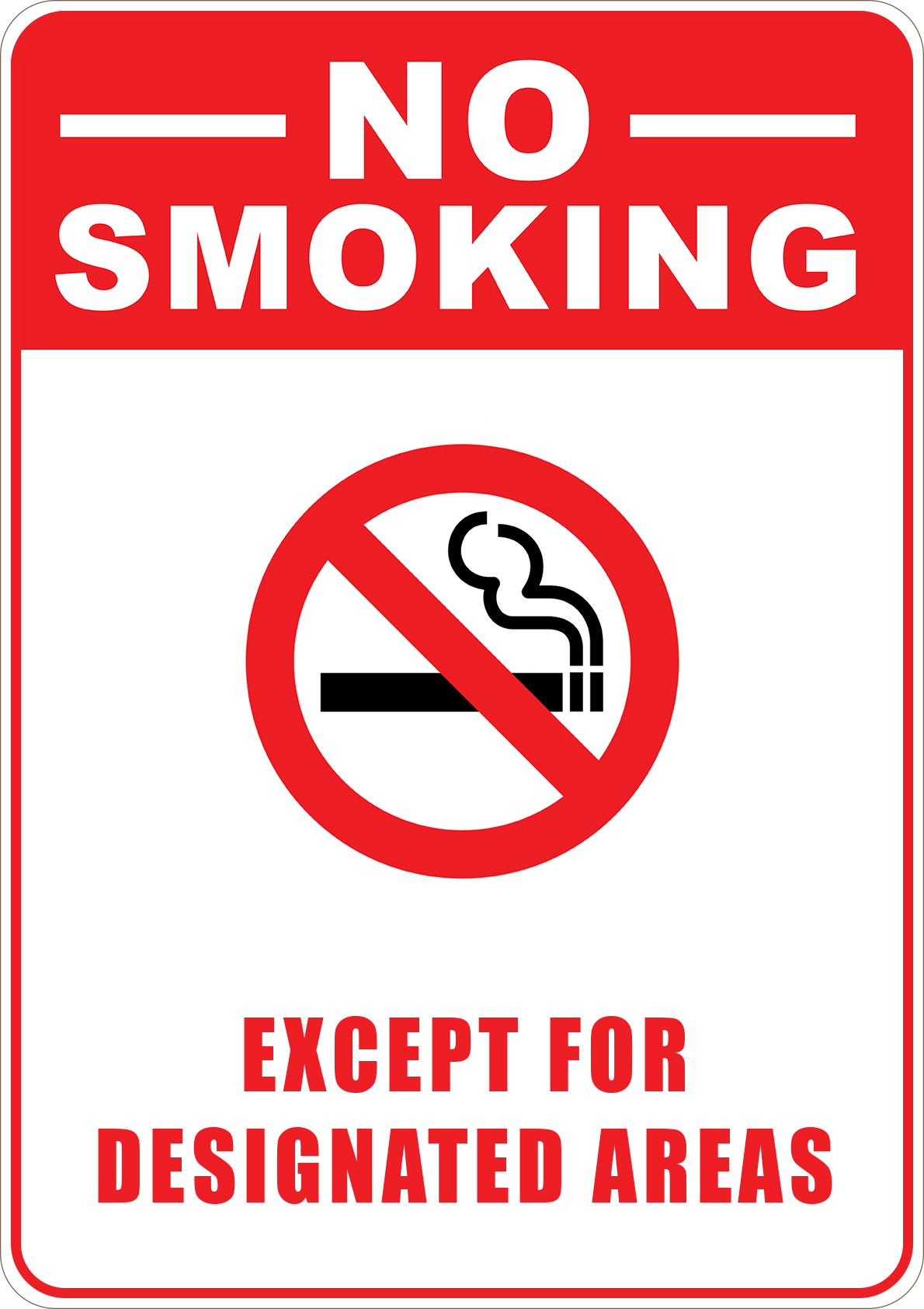 PRINTED ALUMINUM A2 SIGN - No Smoking Except for Designated Areas.