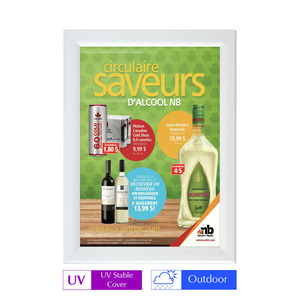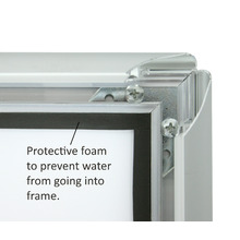 Please Note: This frame is specifically designed to use outdoors however it is hightly recommended that you print on waterproof paper to prevent water damage to poster in case of heavy sheet rain.