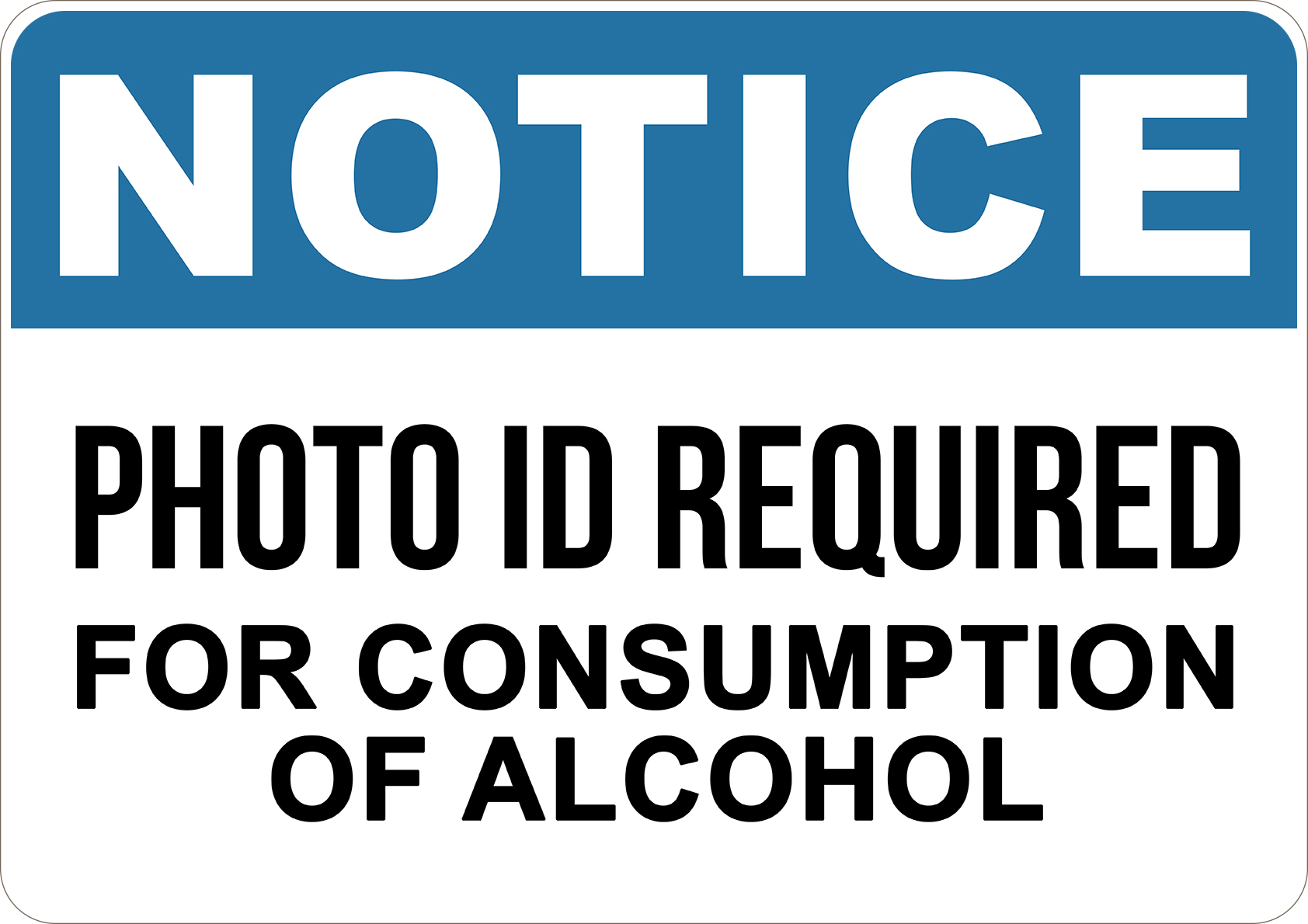 PRINTED ALUMINUM A3 SIGN - Photo ID Required for Consumption of Alcohol Sign
