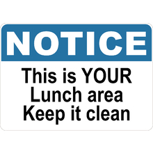 PRINTED ALUMINUM A2 SIGN - This Is Your Lunch Area Keep It Clean Sign