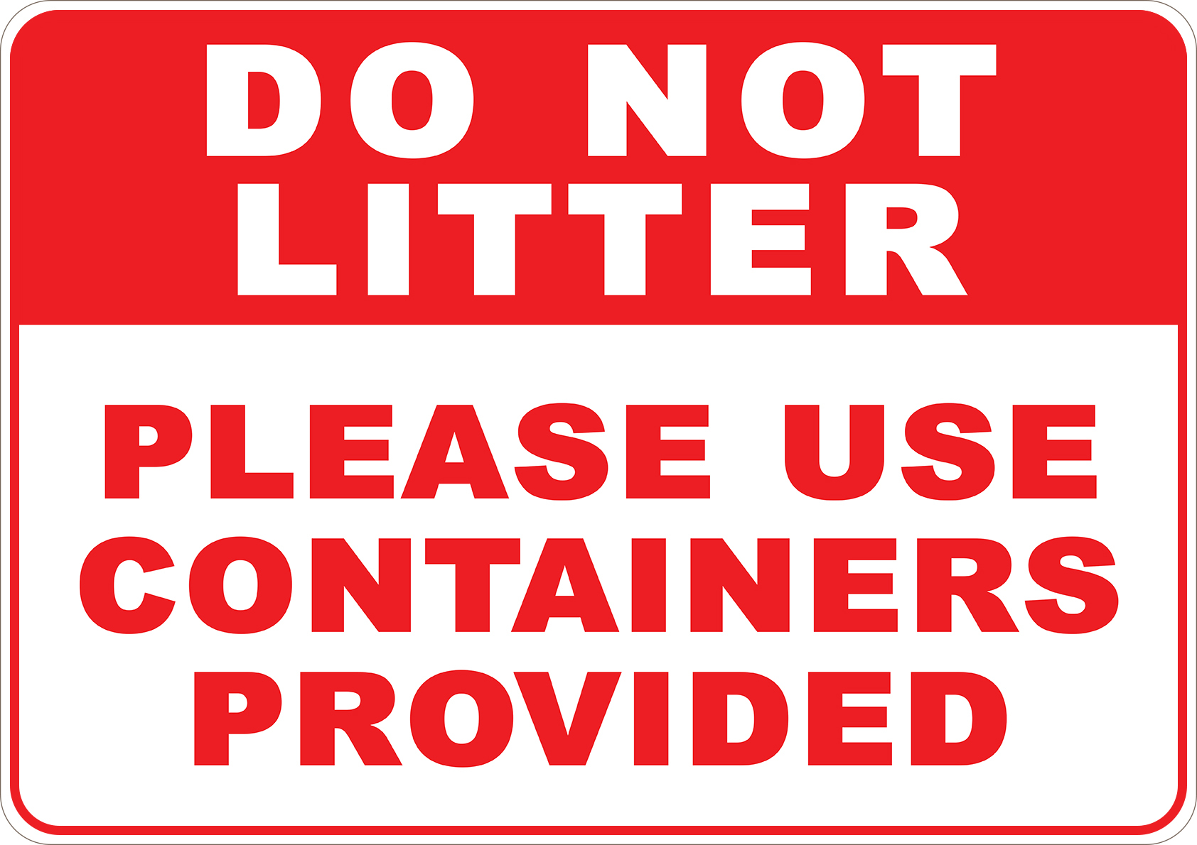PRINTED ALUMINUM A5 SIGN - Do Not Litter Please Use Containers Provided Sign
