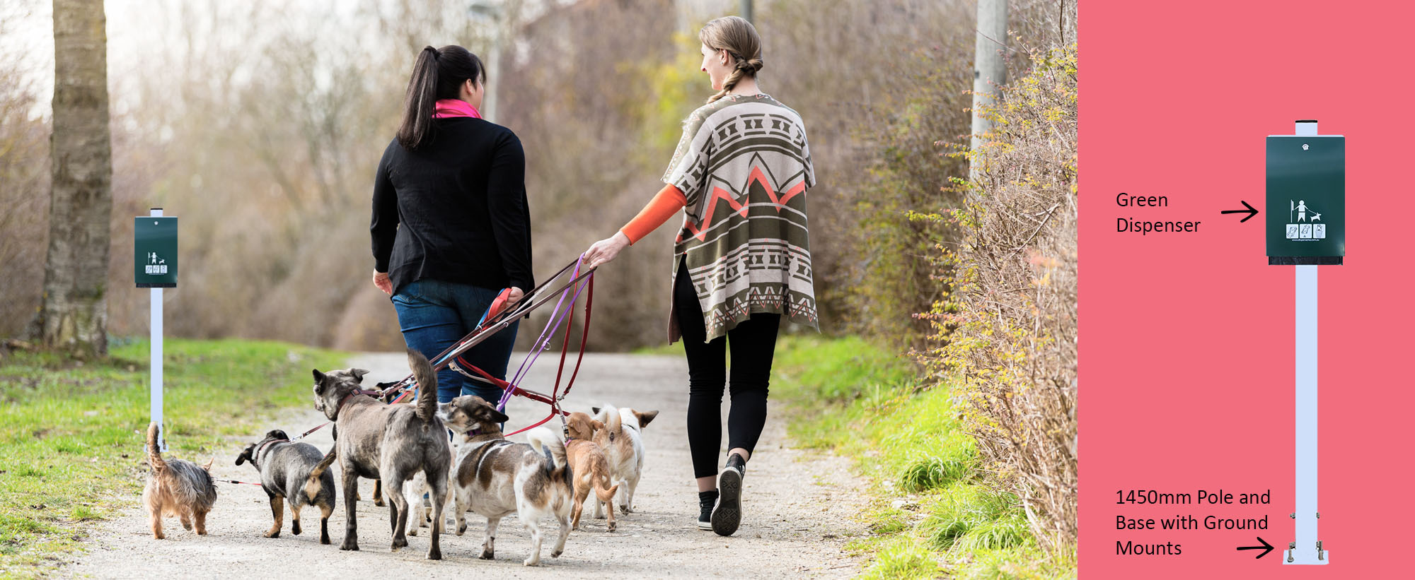 Green Dog Waste Bag Dispenser with Silver 1150mm Pole