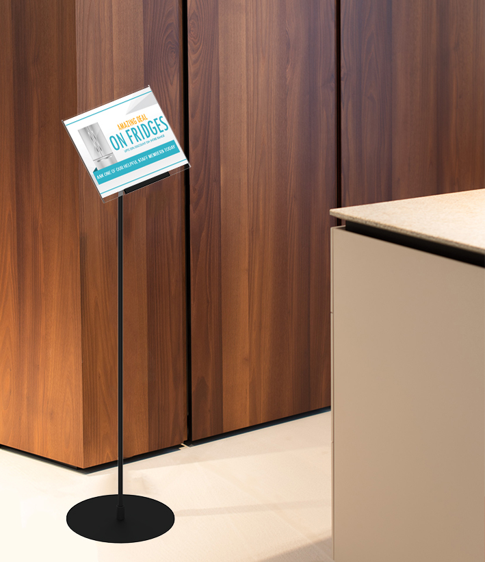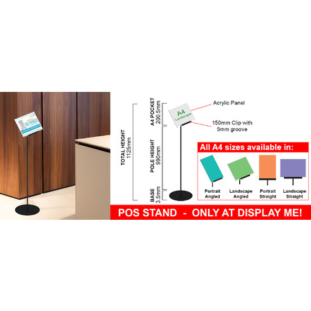 This POS Stand is ideal for displaying posters and information in a retail or fast paced environments such as furniture and appliance stores retail stores, supermarkets, department stores, car dealerships, cafes, newsagents, waiting rooms.