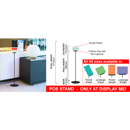 This POS Stand is ideal for displaying posters and information in a retail or fast paced environments such as furniture and appliance stores retail stores, supermarkets, department stores, car dealerships, cafes, newsagents, waiting rooms.