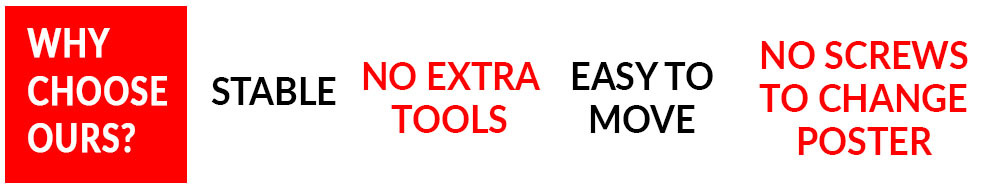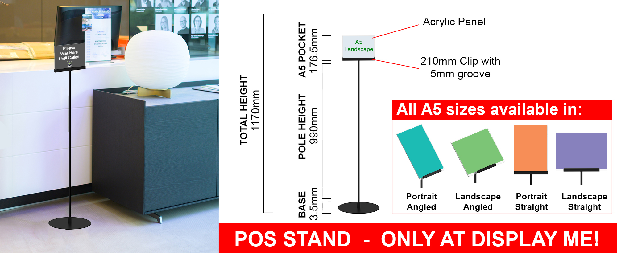 This POS Stand is ideal for displaying posters and information in a retail or fast paced environments such as furniture and appliance stores retail stores, supermarkets, department stores, car dealerships, cafes, newsagents, waiting rooms.