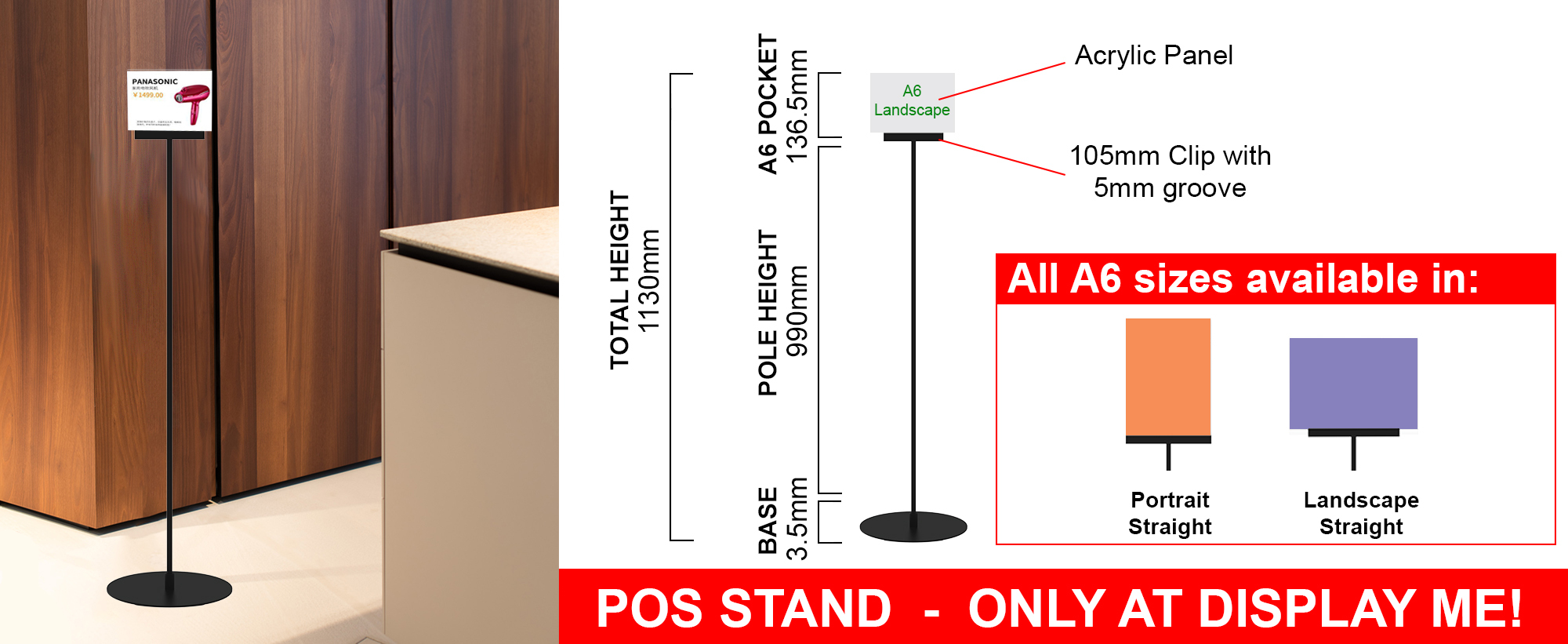 This POS Stand is ideal for displaying posters and information in a retail or fast paced environments such as furniture and appliance stores retail stores, supermarkets, department stores, car dealerships, cafes, newsagents, waiting rooms.