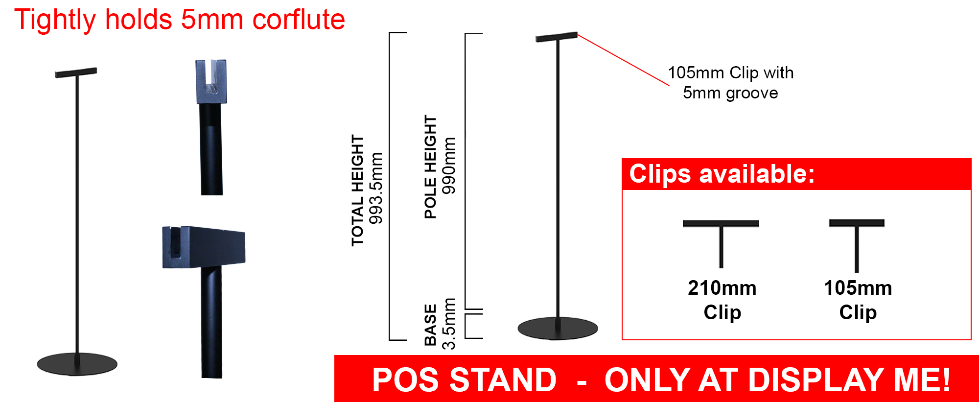 This POS Stand is ideal for displaying posters and information in a retail or fast paced environments such as furniture and appliance stores retail stores, supermarkets, department stores, car dealerships, cafes, newsagents, waiting rooms.