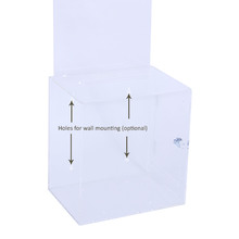 In StockThis clear acrylic suggestion box is a freestanding comment box that can be placed just about anywhere and can be easily moved around. This ballot box is lockable and secure preventing theft or tampering. It is easy to set up and no tools are necessary.