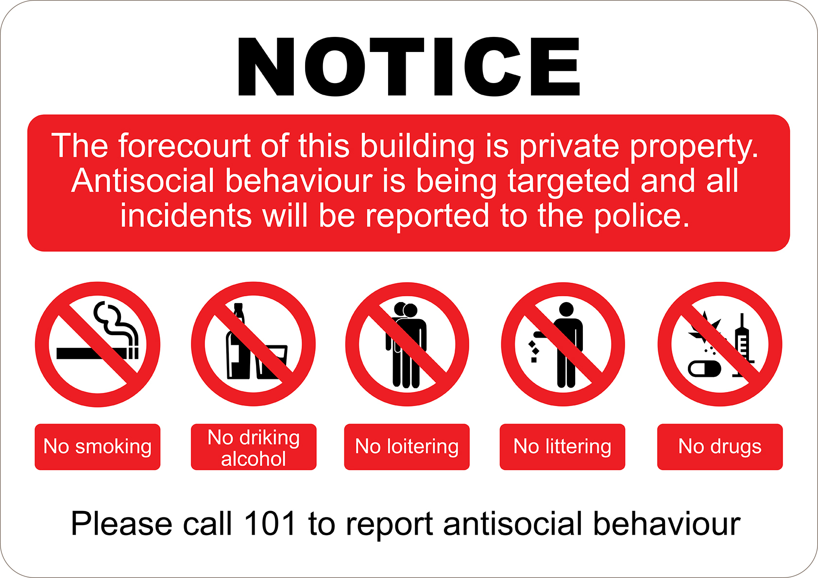 PRINTED ALUMINUM A4 SIGN - Private Property Anti Social Sign