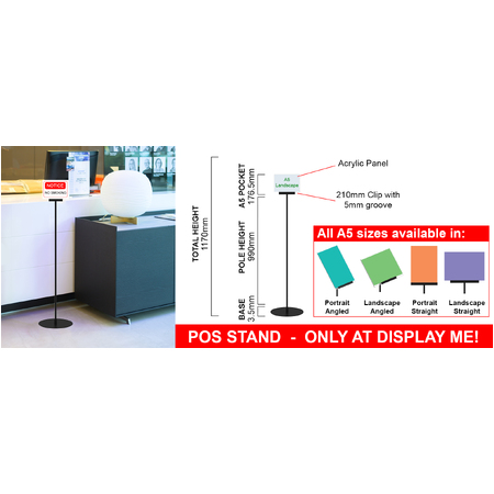 QR Sign and Poster Stand A5 Landscape on 960mm pole
