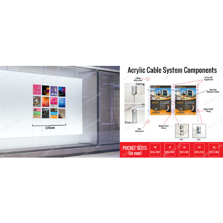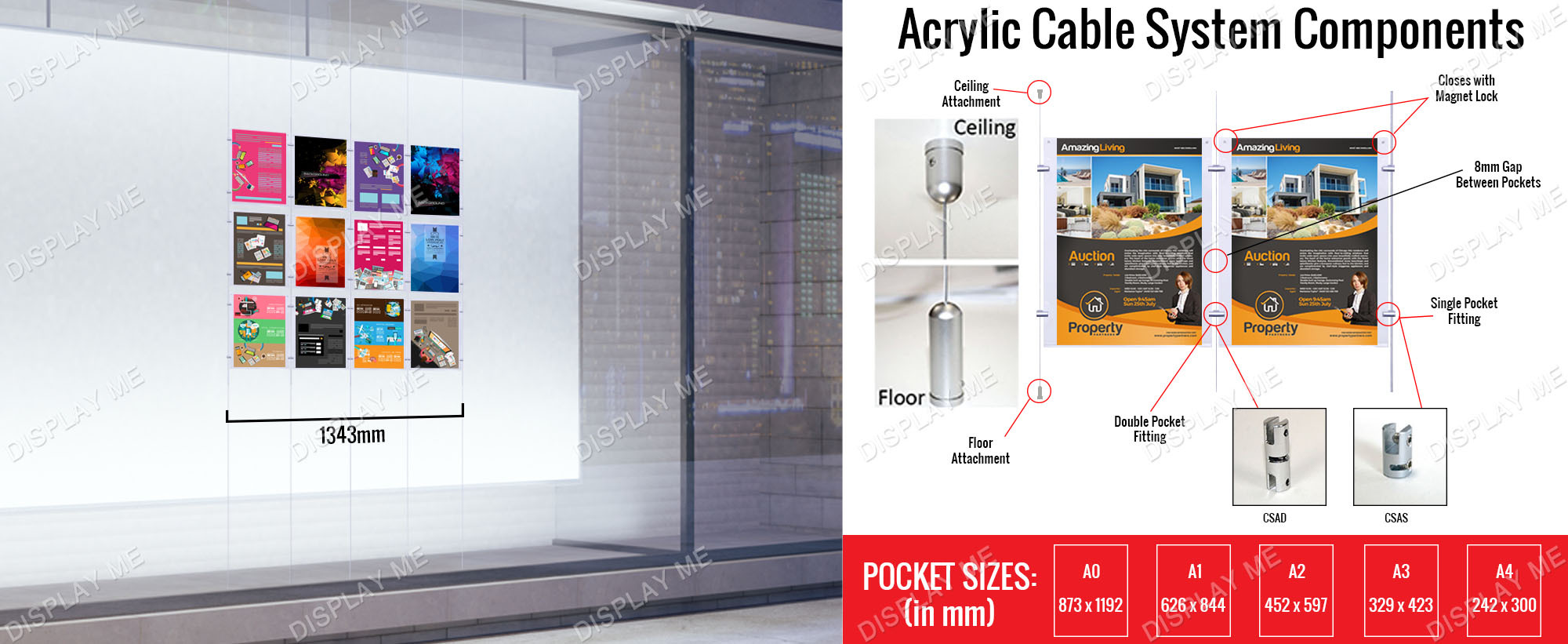 The Acrylic Cable Display also known as wire display or display cable system uses single and double pocket fittings depending on which system you choose. The pocket fittings are made of aluminium giving it a sating finish for a elegant look.