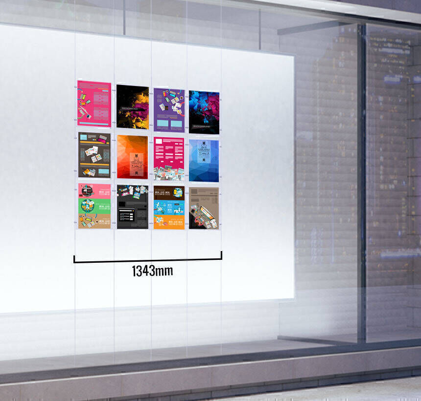 This Window Cable Display, Window Real Estate Displays is a double sided 3mm thick acrylic display attached to a cable system.