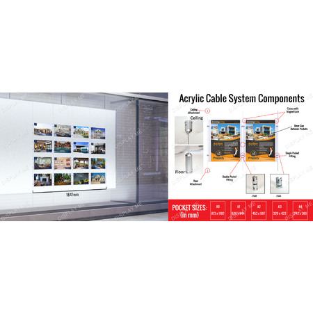 The Acrylic Cable Display also known as wire display or display cable system uses single and double pocket fittings depending on which system you choose. The pocket fittings are made of aluminium giving it a sating finish for a elegant look.