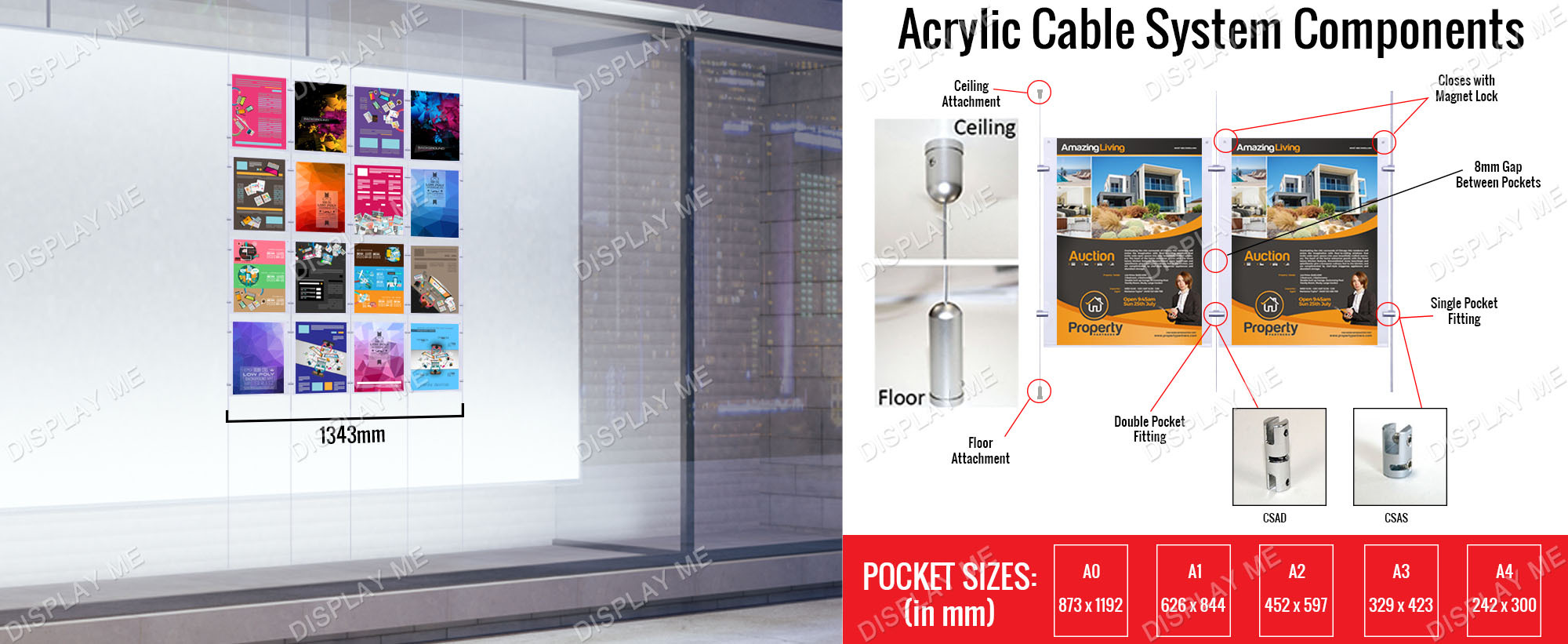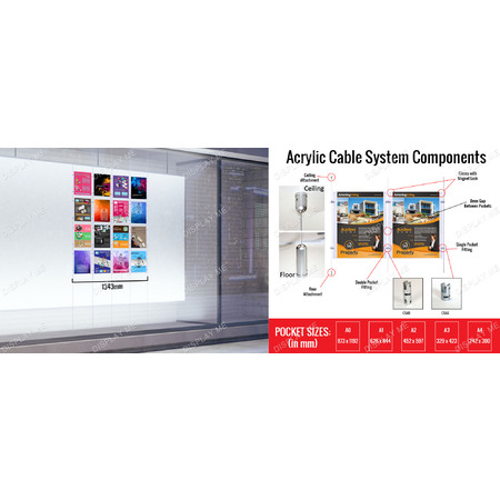 The Acrylic Cable Display also known as wire display or display cable system uses single and double pocket fittings depending on which system you choose. The pocket fittings are made of aluminium giving it a sating finish for a elegant look.