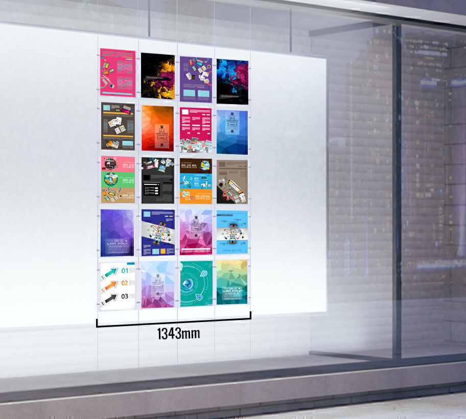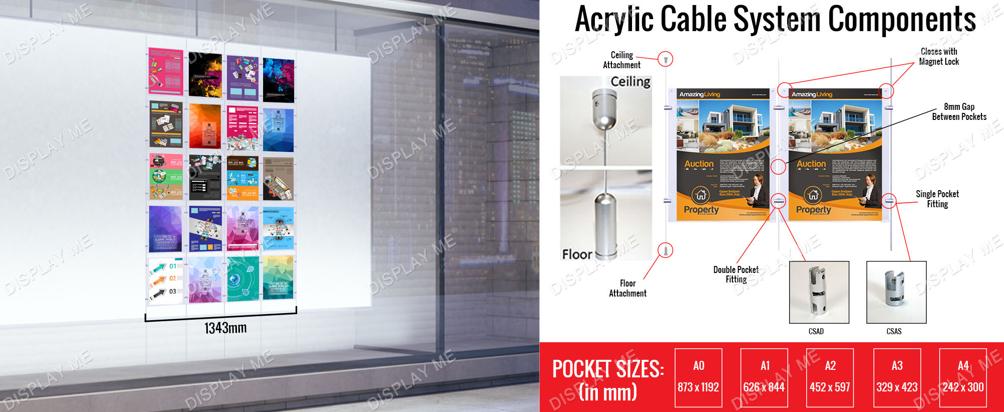 This Window Cable Display, Window Real Estate Displays is a double sided 3mm thick acrylic display attached to a cable system.