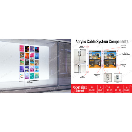 The Acrylic Cable Display also known as wire display or display cable system uses single and double pocket fittings depending on which system you choose. The pocket fittings are made of aluminium giving it a sating finish for a elegant look.